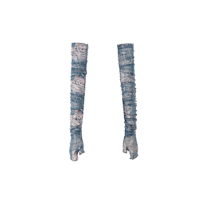 Printed Vintage Sunscreen Mesh Pleated Sleeves