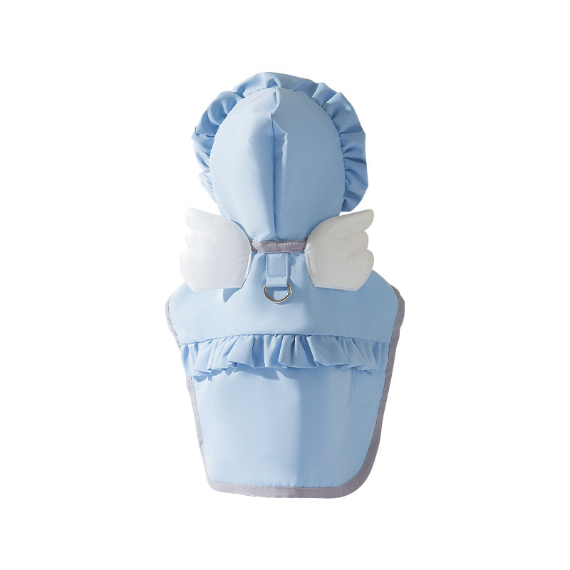 Our raincoat features a convenient cape design, making it incredibly easy to put on and take off. No more struggling with complicated outfits—just slip it over your dog's back, and you're ready to go! Plus, with the included tow buckle, attaching a leash for a walk is more convenient than ever. This makes the raincoat not only functional for wet weather but also ideal for travel, ensuring your dog stays dry on the go.Water-Repellent and Quick-Drying Fabric
