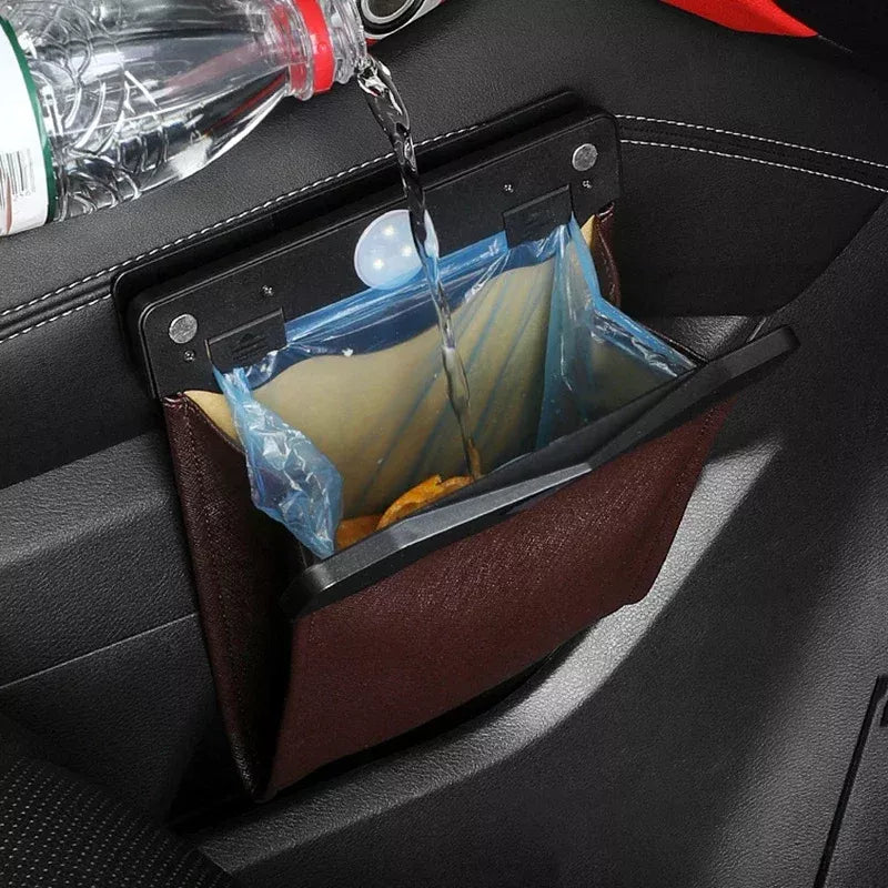 Waterproof Magnetic Car Trash Bag with LED & Leather Storage