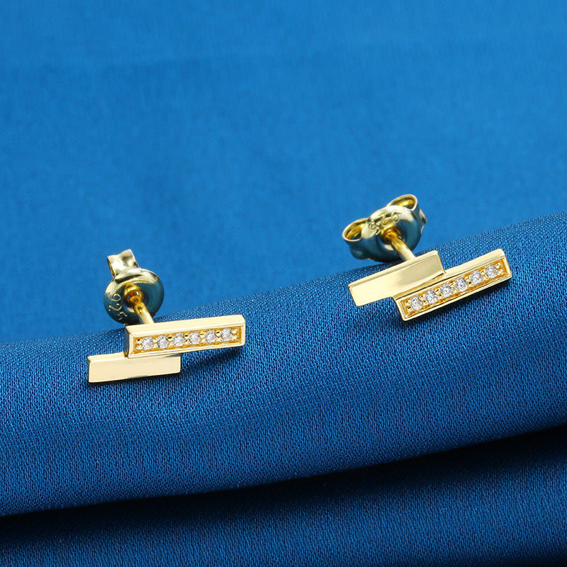 Limited Luxury Light Earrings Women T Square White Zirconium