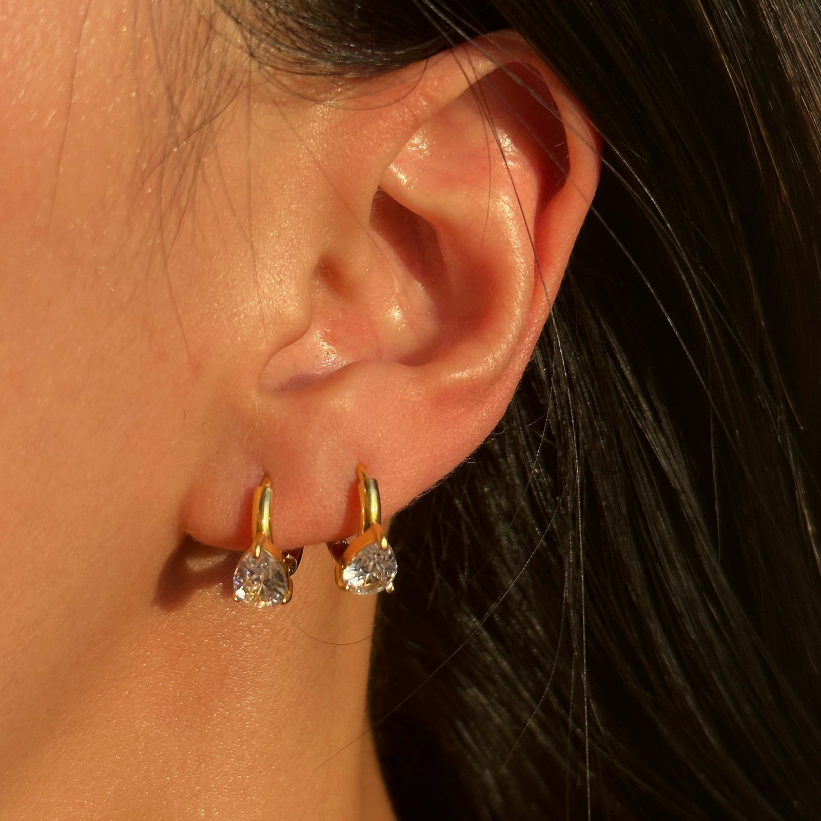 Compact Mini Exquisite Temperament Water Drop Pear-shaped Zircon Simple Titanium Steel Lugs