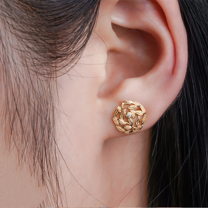 14K Gold Plated Ladies Earrings Light Luxury Fallen Leaves