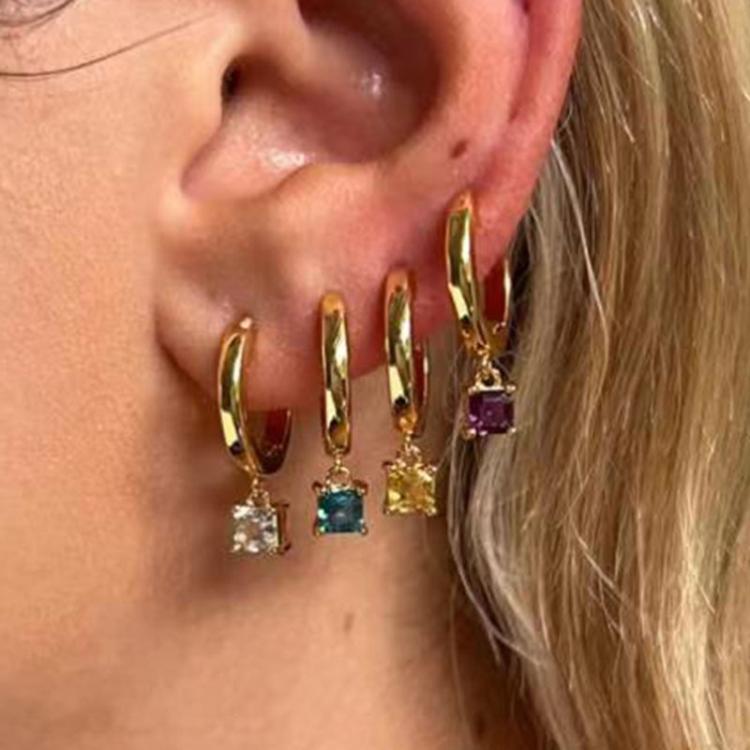 Temperament Square Pendant Zircon Earrings Titanium Steel Plating 18k Gold