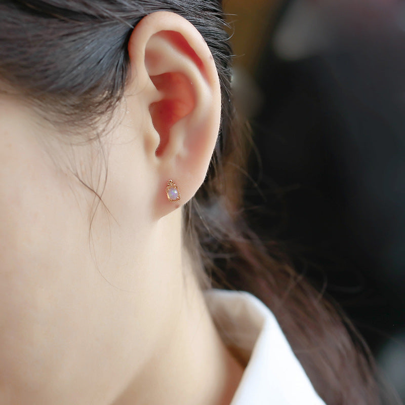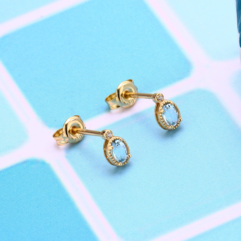Small And Simple Retro Sky Blue Topaz Stud Earrings For Women