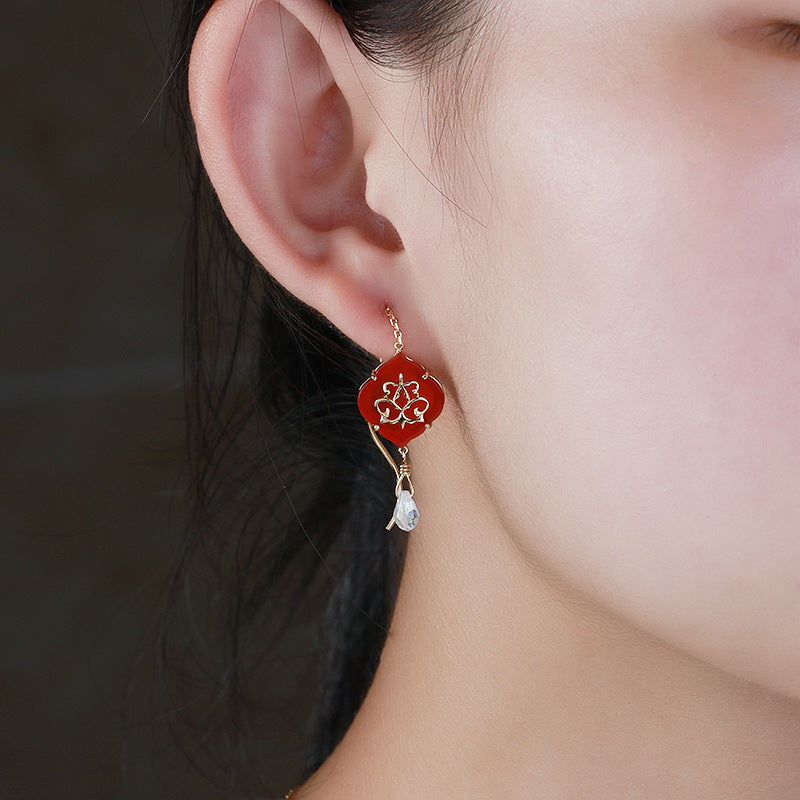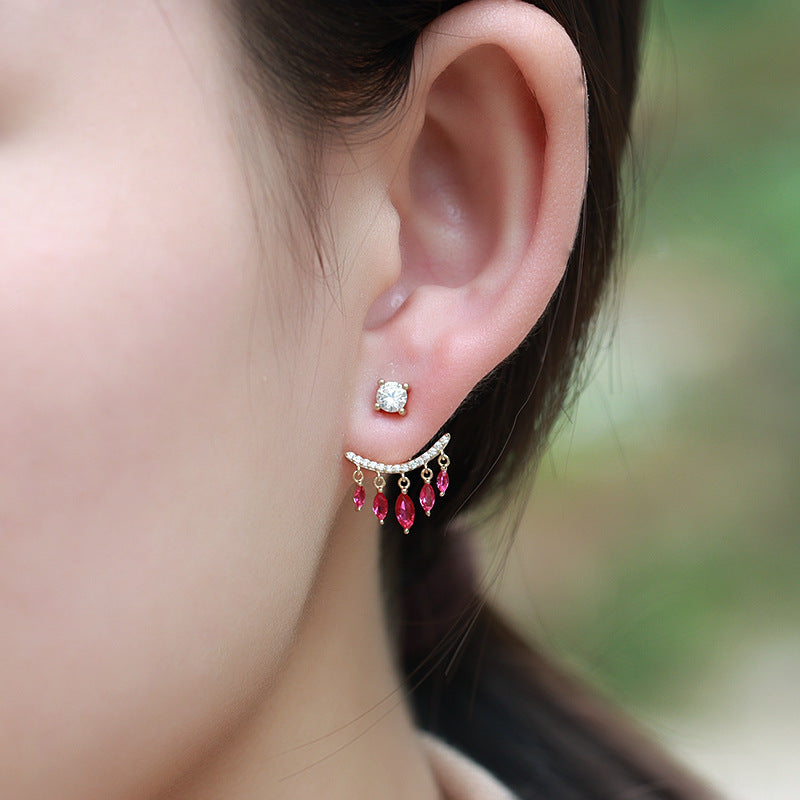 Vintage Style Red Corundum Tassel Earrings
