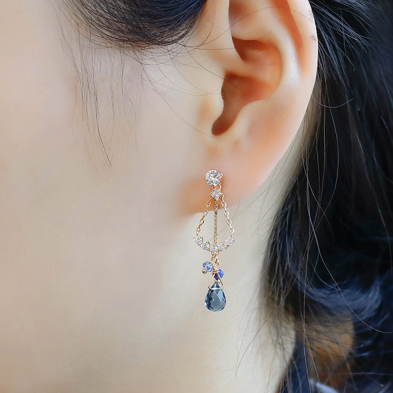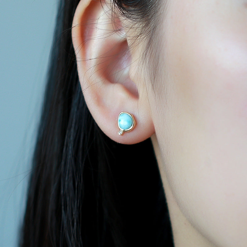 Simple Retro Sky Blue Topa Earrings