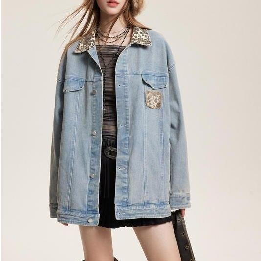 Leopard Patchwork Denim Jacket