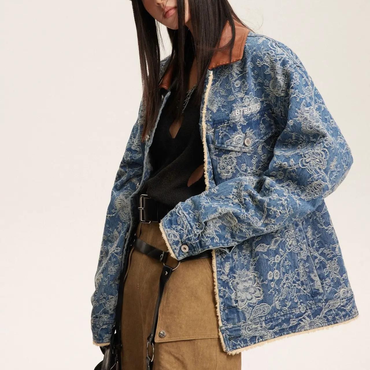 Chic Denim Patchwork Embroidery Jacket