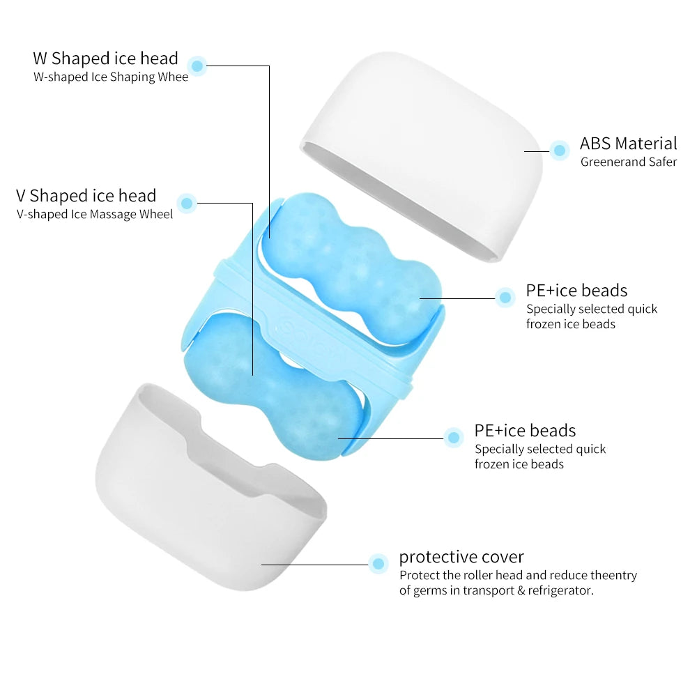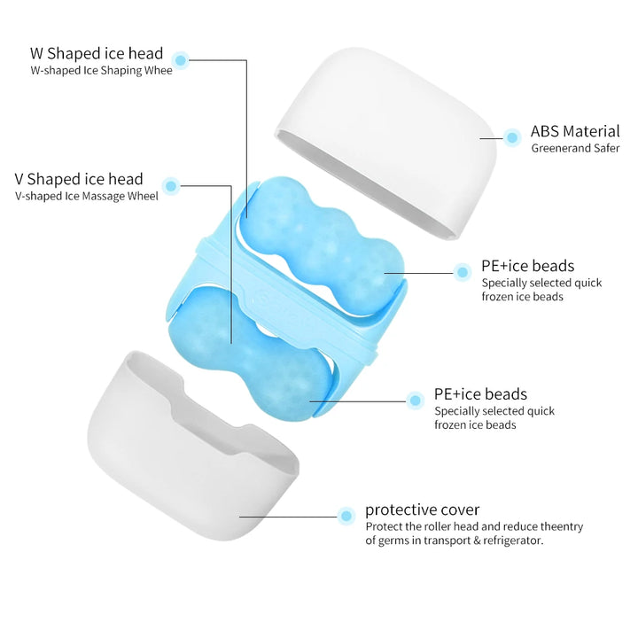 The Ice Roller is crafted from high-quality materials, including gel and PE for the roller heads and ABS for the handle. The two roller heads—W-shaped and V-shaped—offer targeted treatments to address various skin concerns. The W-shaped head increases the massage effect, providing a dual benefit of ice compression and massage, while the V-shaped head focuses on lifting and shaping for a firmer appearance. This versatile tool is easy to use, reusable, and freezable, making it an eco-friendly addition to your skincare collection.- Dual Roller Heads: W-shaped for enhanced massage and ice compression; V-shaped for lifting and shaping.