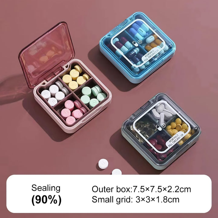 Portable Moisture-proof 4-Cell Pill Box for Weekly Medication Management