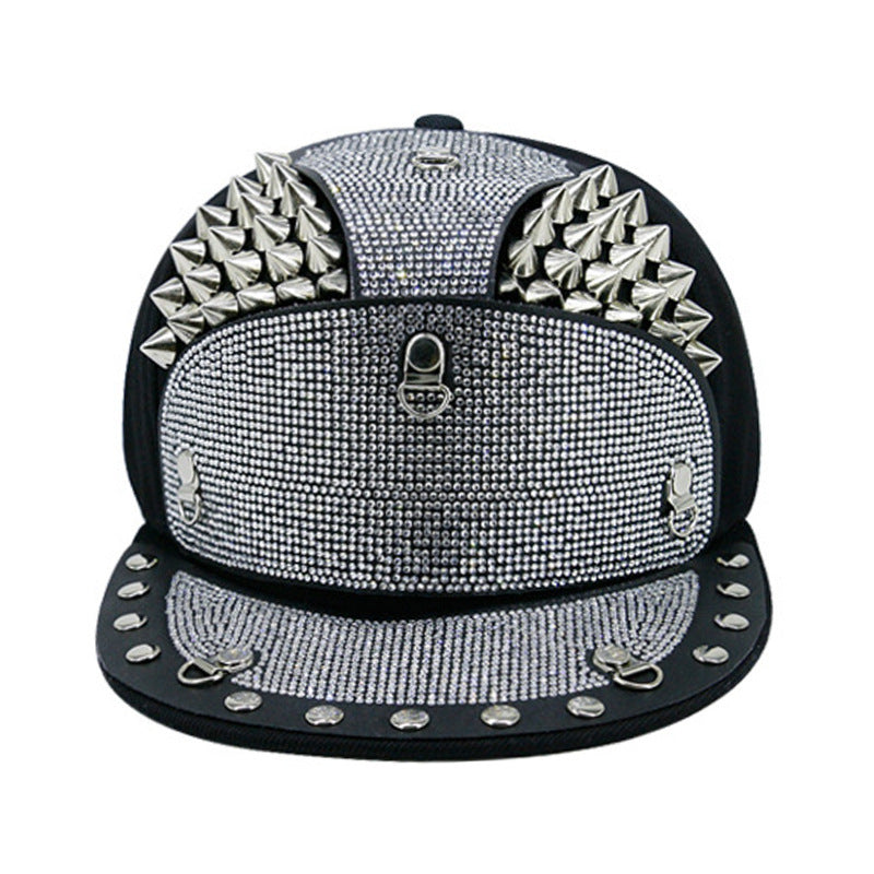 Men's Fireworks Colorful Crystals Metal Edging Hiphop Performance Peaked Cap