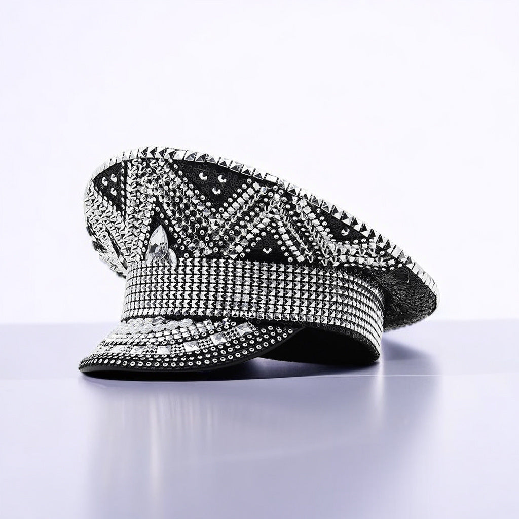 All-match Party Carnival Flat Top Punk Black Paillette Diamond Photography Hat