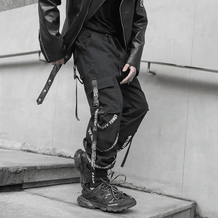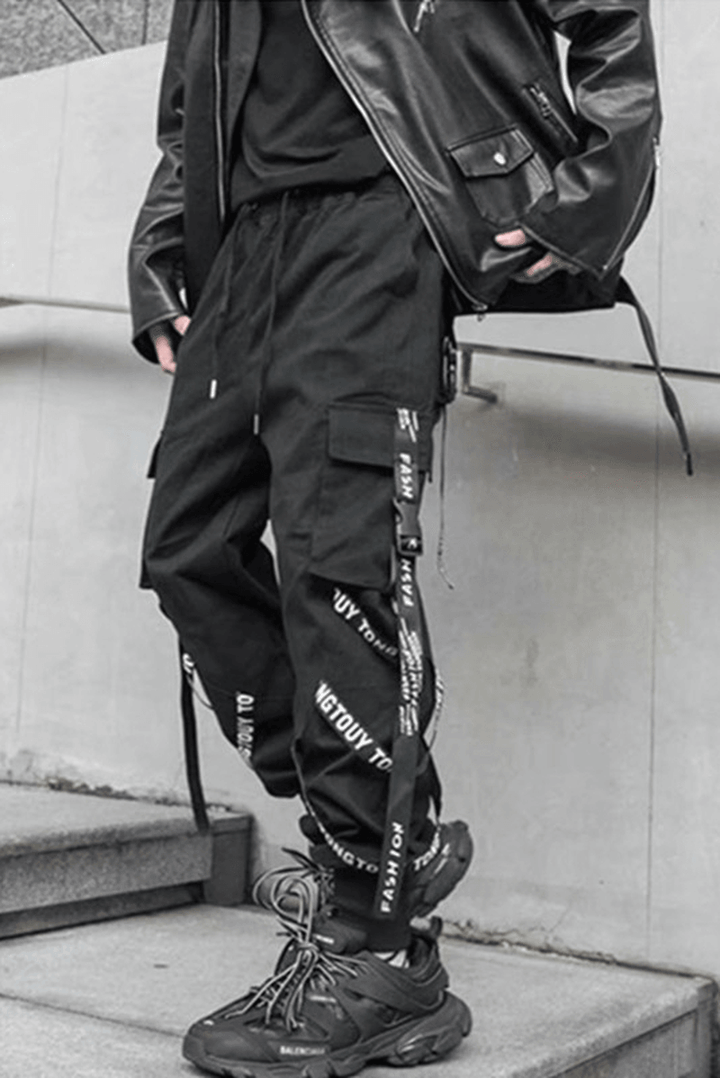 Men's Casual Pants with Drawstring Waist and Asymmetrical Hem - MRSLM