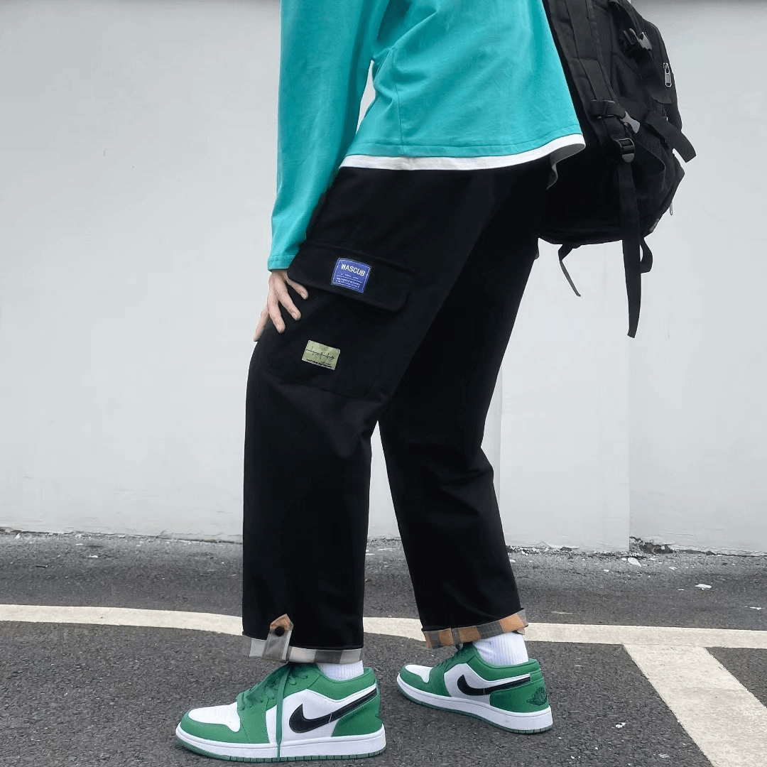 Men's Casual Pants with Drawstring Waist and Asymmetrical Hem - MRSLM
