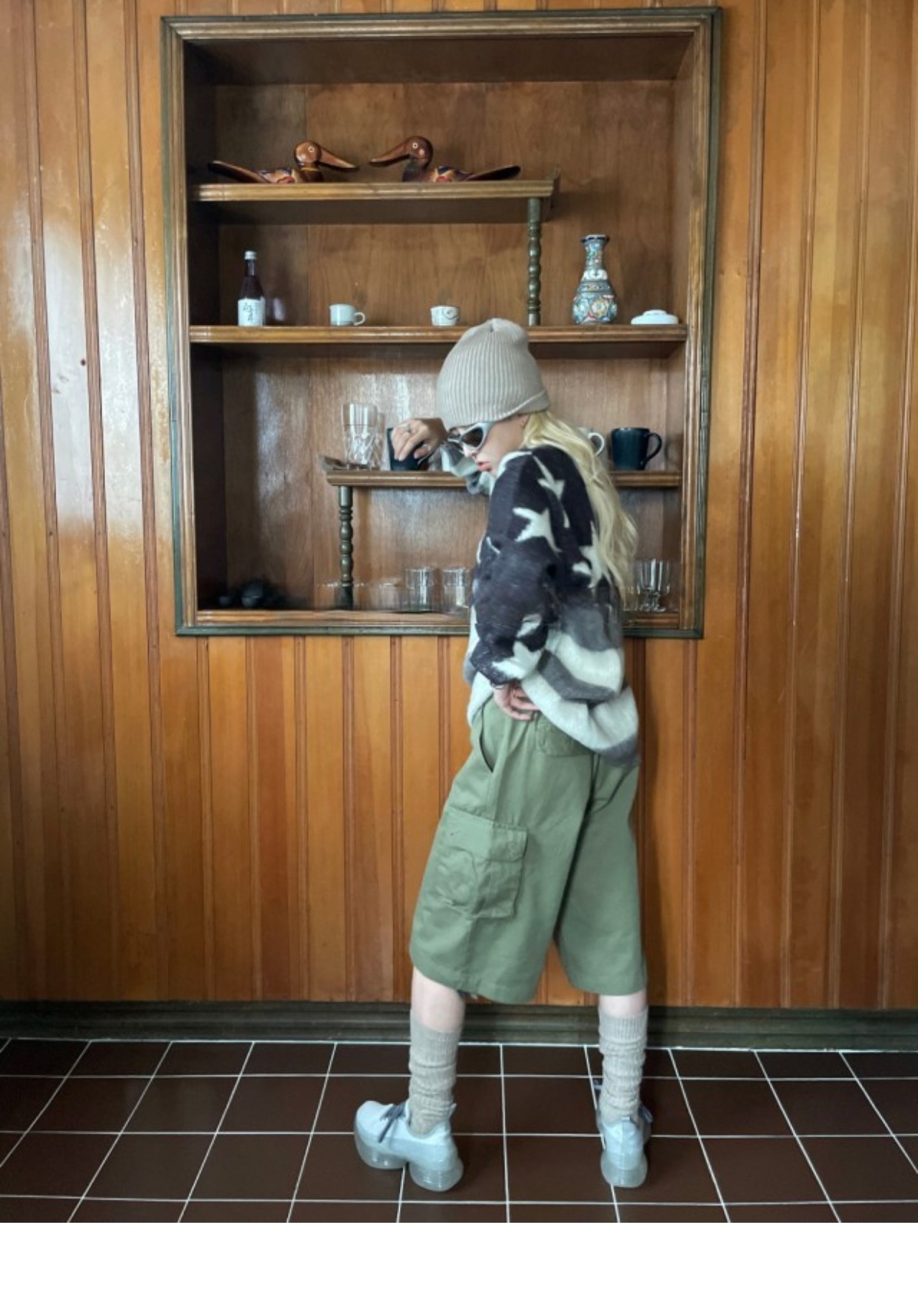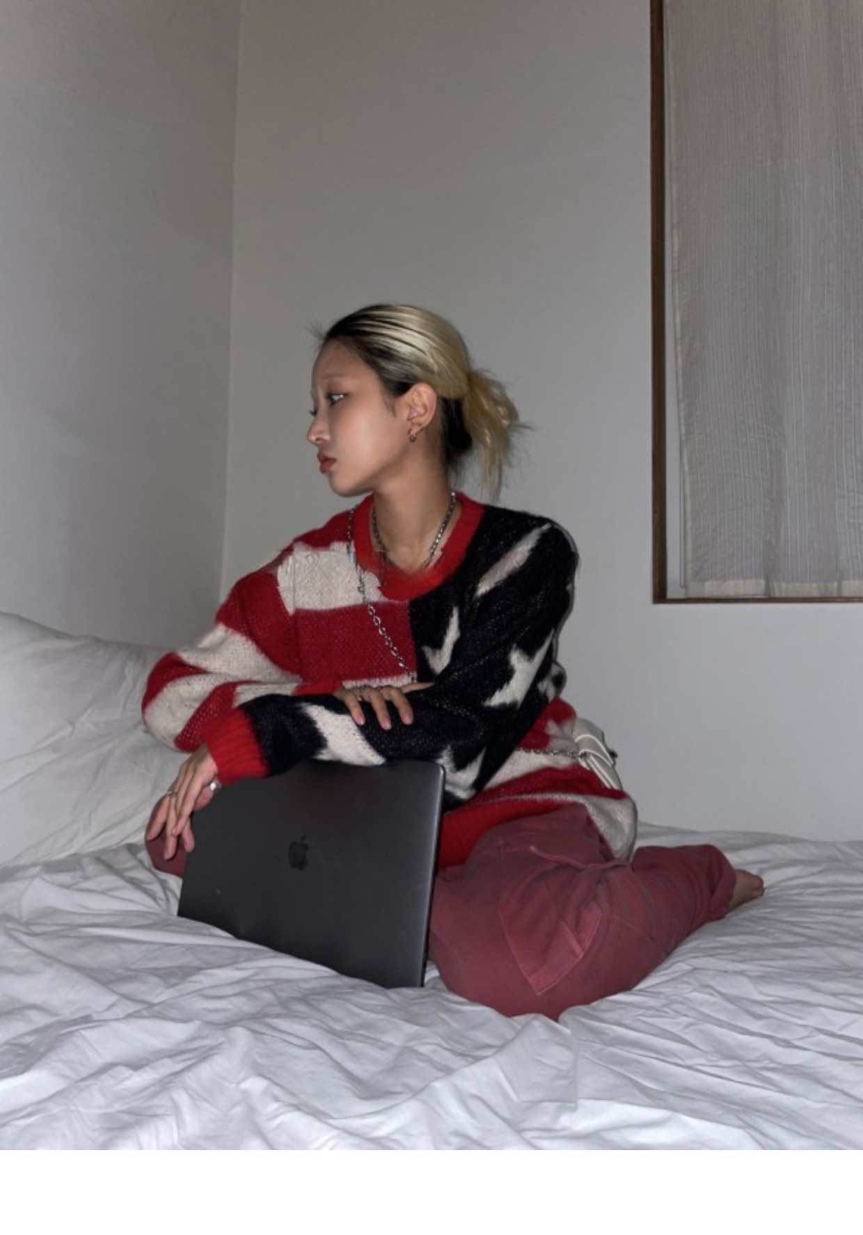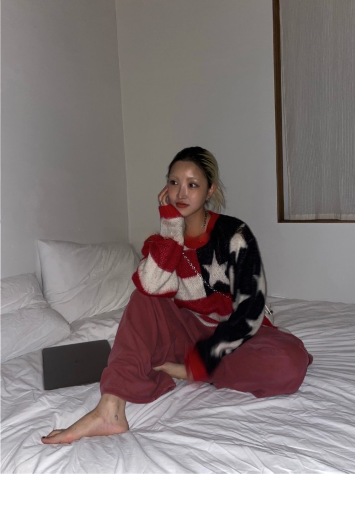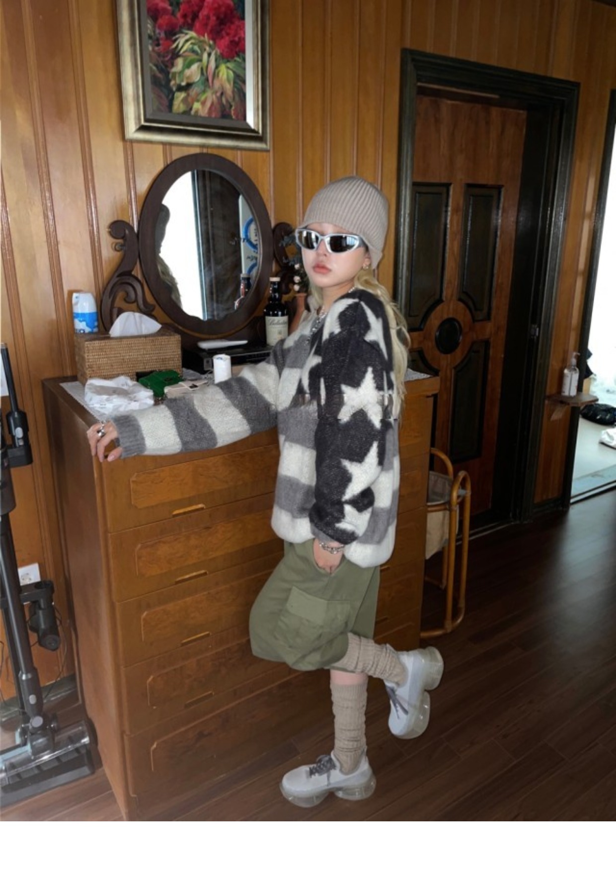 American Vintage Street Fashion Star Stripe Spliced Round Neck Loose Sweater
