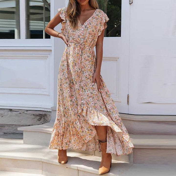 Printed V-neck lace up dress