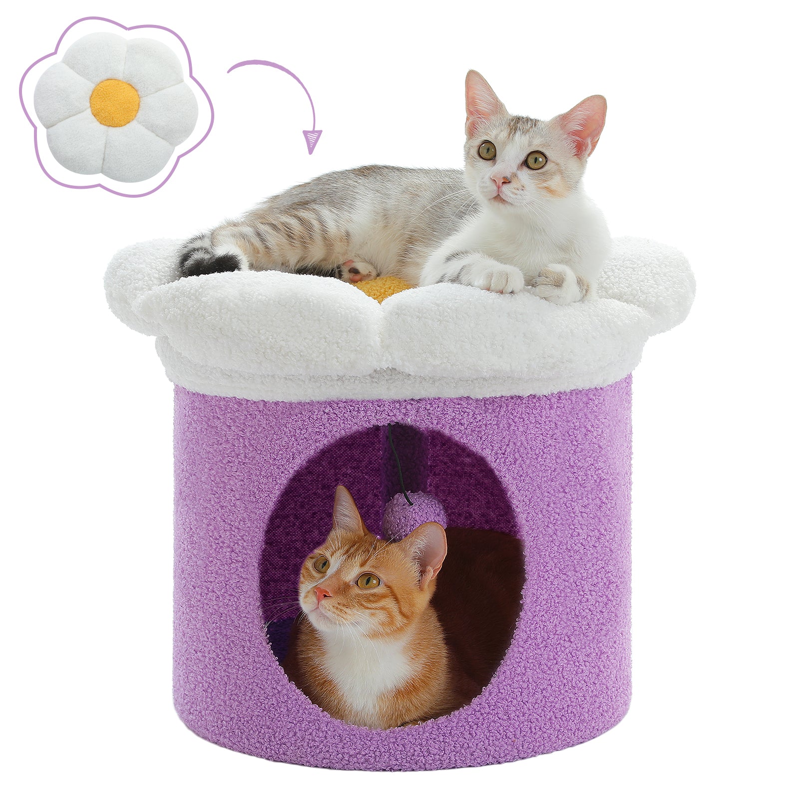Cozy Flower Cat House with Pompom Ball - Double-Deck Cat Condo