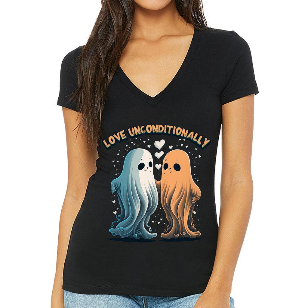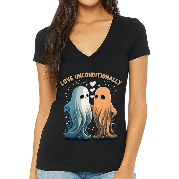 Love Unconditionally Women's V-Neck T-Shirt - Ghost Print V-Neck Tee - Graphic T-Shirt