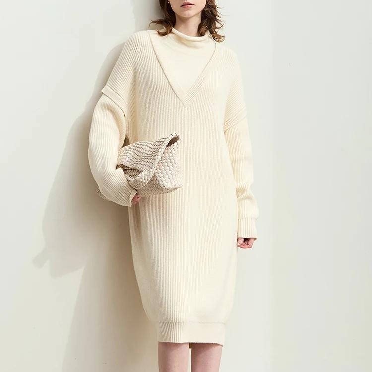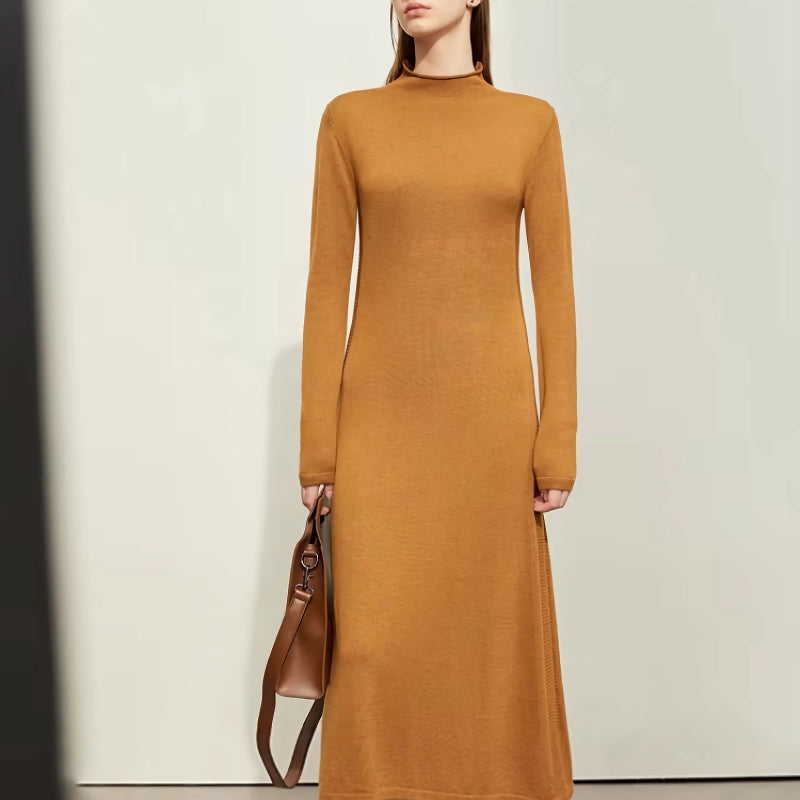 A-Line Slim Waist Knitted Dress with Zipper Collar