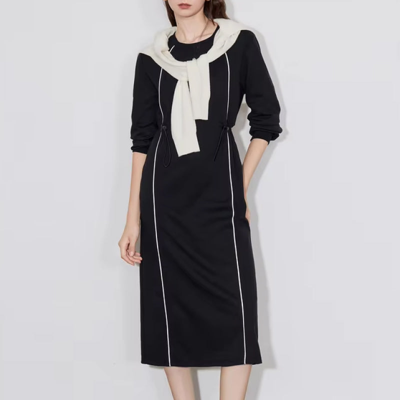 Sports Contrasting Color Pullover Dress with Drawstring Belt