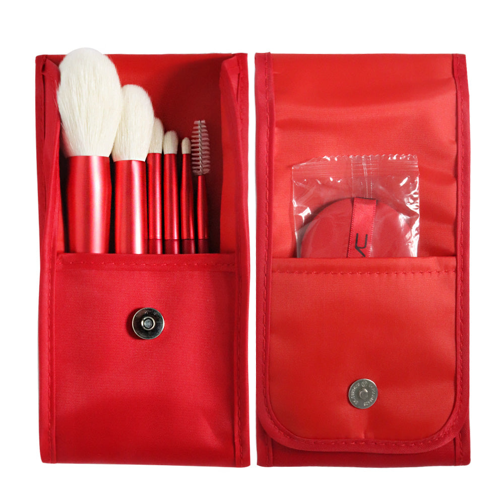 High Quality 6Pcs Natural Goat Hair Makeup Brush Set with Pouch & Air Puff