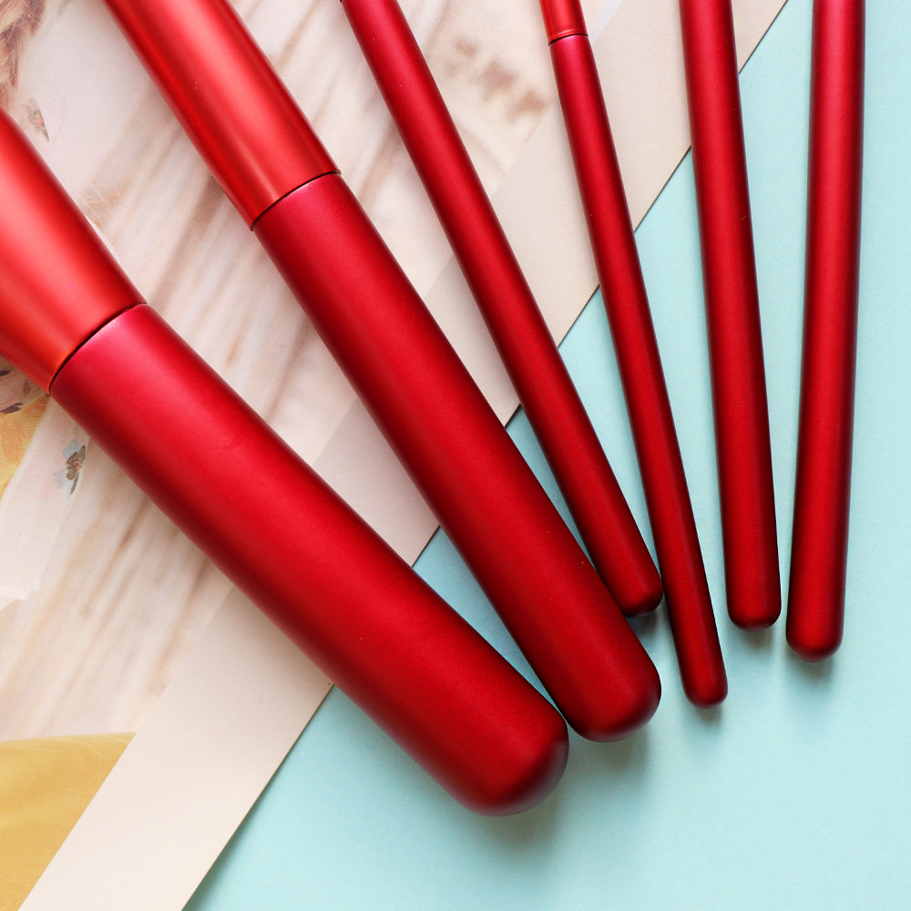 • Set features: powder brush, blush brush, shadow blending brush, eyeshadow brush, lip brush, and eyelash brush