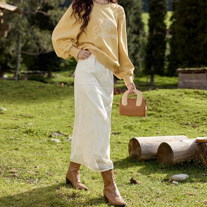 This lace embroidery patchwork skirt stands out for its intricate detailing and versatile design, making it a must-have for fashion-conscious women. Whether you're aiming for an office-appropriate look or a more relaxed, chic ensemble, this skirt delivers. The mid-calf length and A-line silhouette offer elegance and comfort, making it perfect for the colder seasons when paired with boots and layers.Add Effortless Elegance to Your Wardrobe