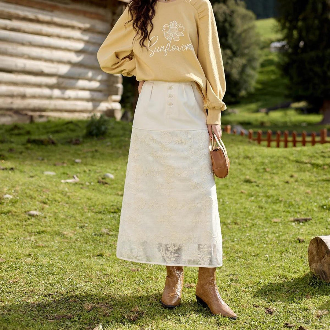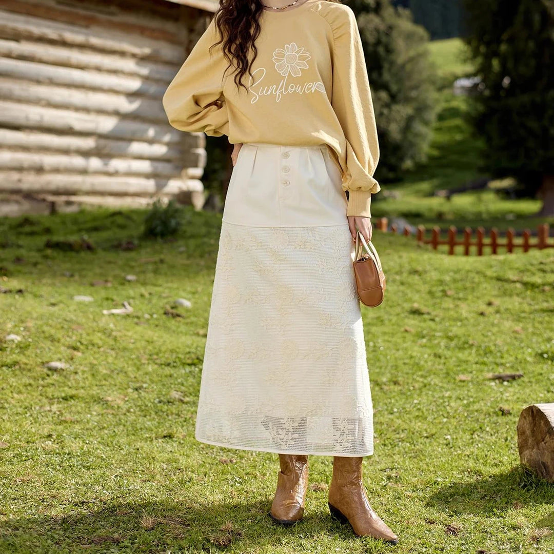 Elegant Lace Patchwork Skirt for Effortless Style