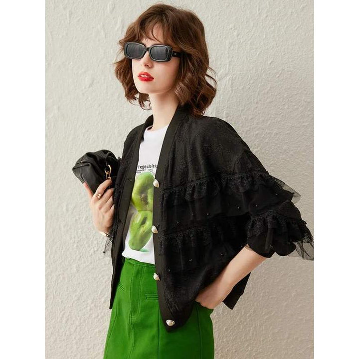 Elevate Your Spring Wardrobe with This Elegant Lace & Bead Mesh Women's Coat