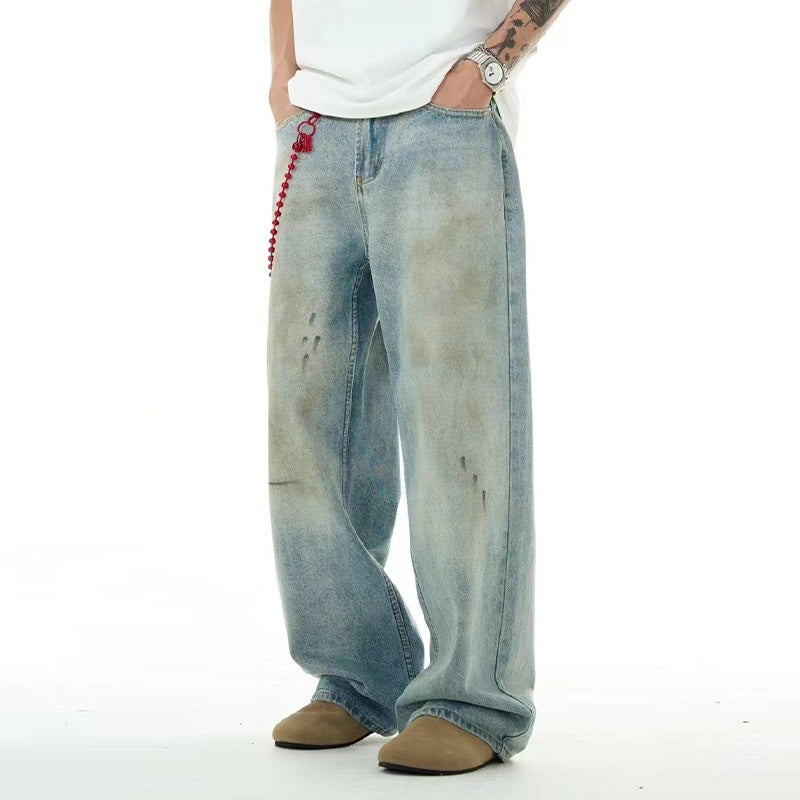 Men's Splash-ink Paint American Retro Loose Straight Wide-leg Pants