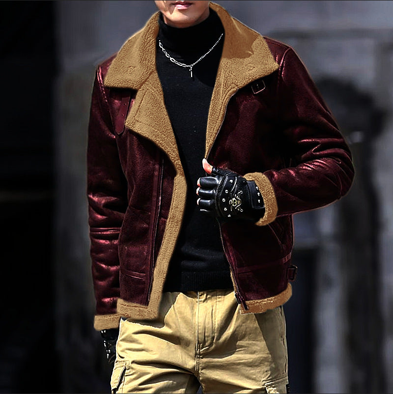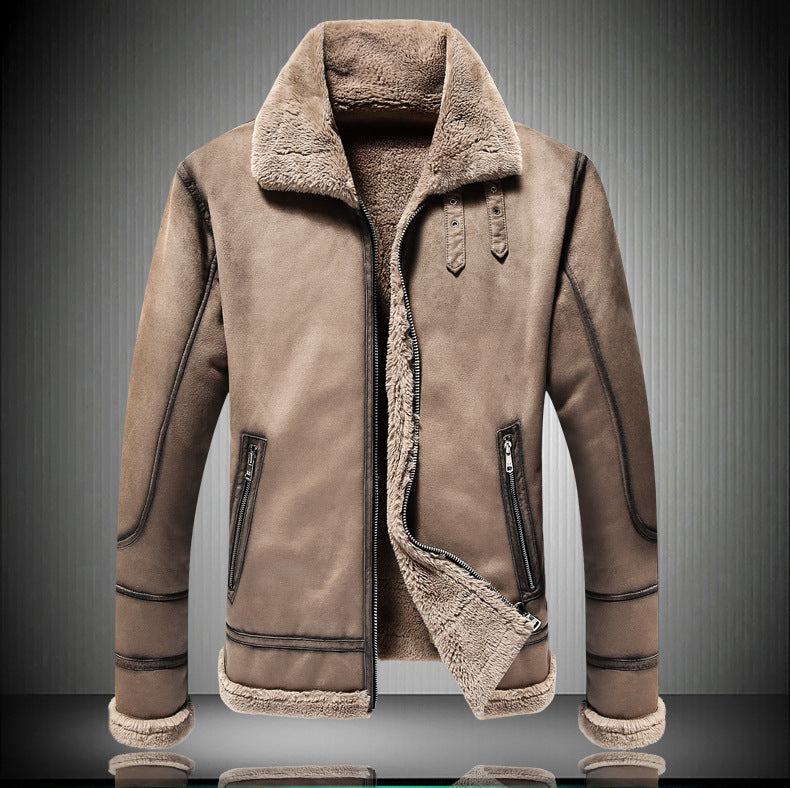 Fur One Lamb Wool Men's Coat Thickened Fleece-lined Suede Fabric Jacket
