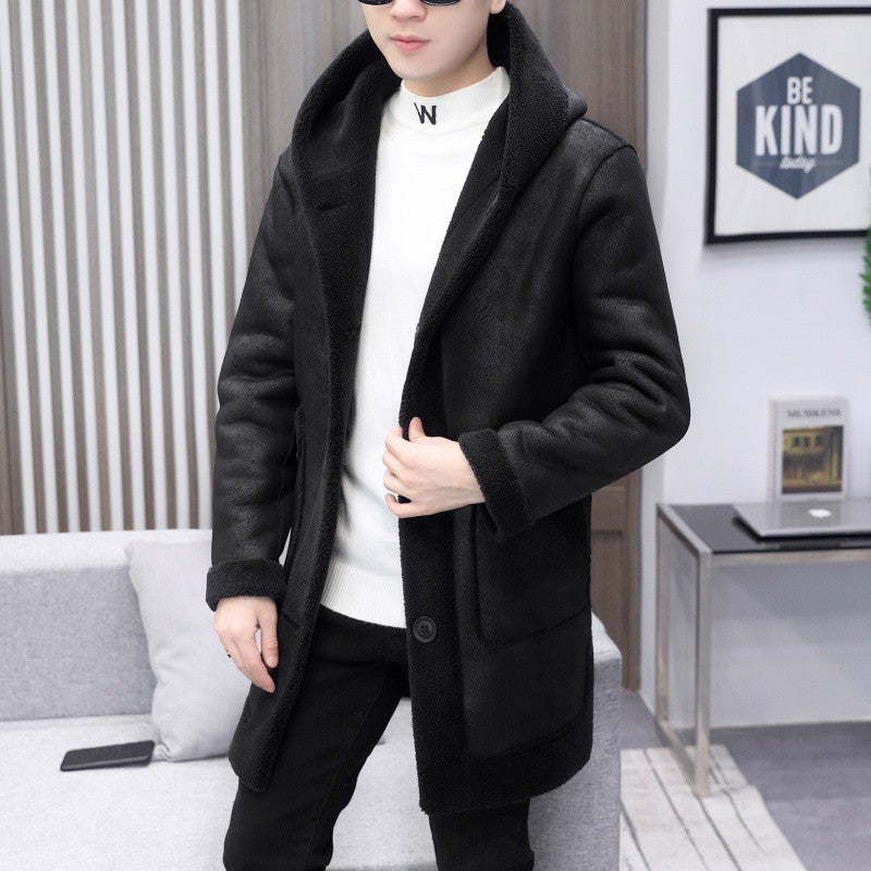 Handsome Man Fur Integrated Fleece-lined Thickened Casual Fashionable Style Coat
