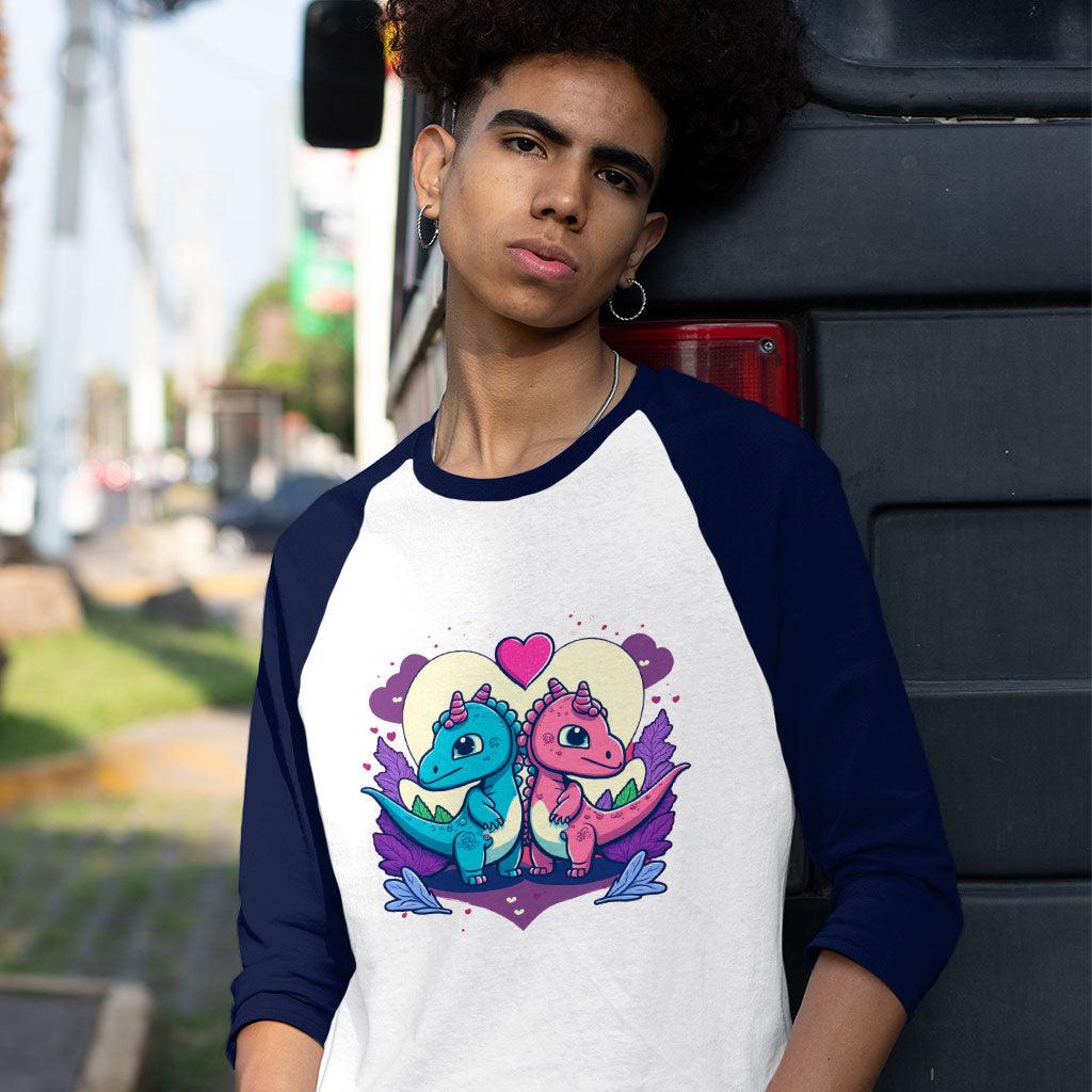 Dinosaur Print Baseball T-Shirt - Love Graphic T-Shirt - Colorful Baseball Tee