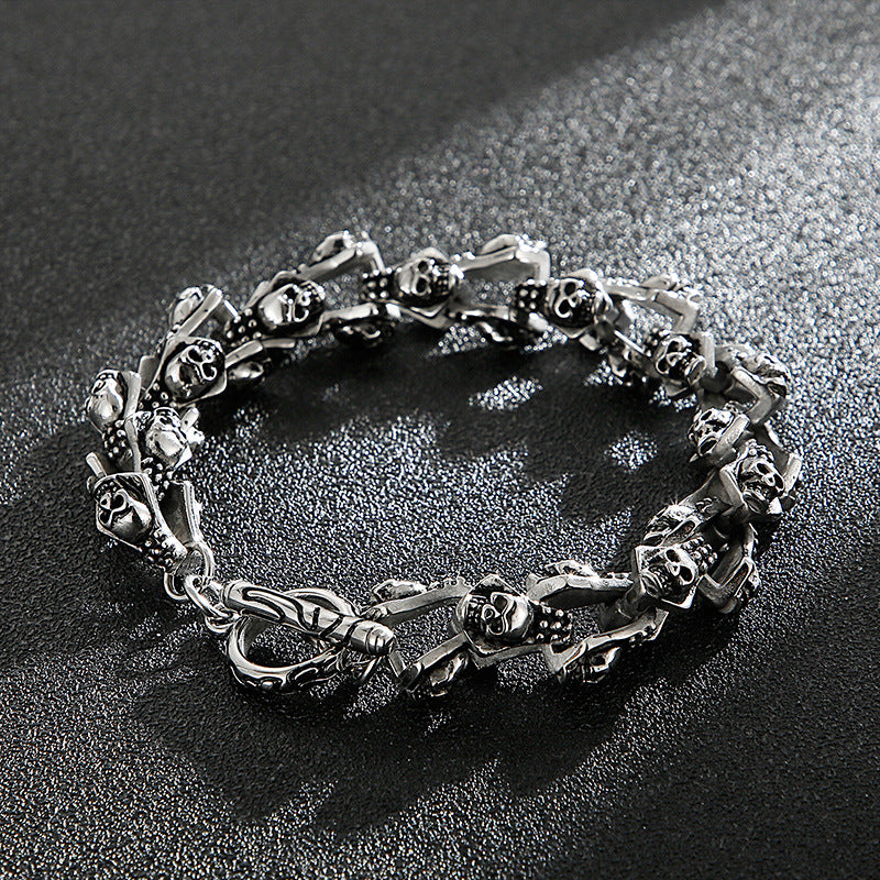 Stylish And Personalized Blackened Stainless Steel Skeleton Bracelet