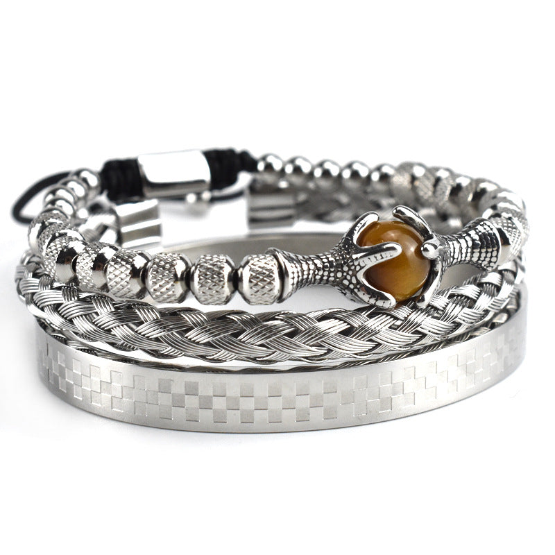 Retro Eagle Claw Yellow Tiger Stone Mesh Woven Bracelet Stainless Steel Mesh Bracelet