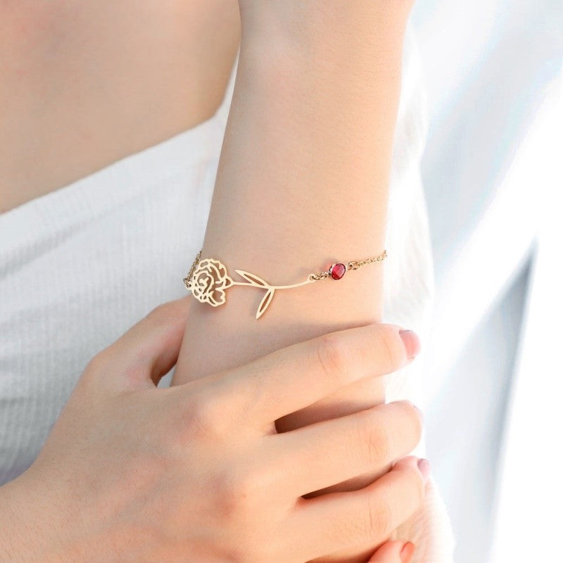 Flower Bracelet For Women With Crystal Birthstone Christmas