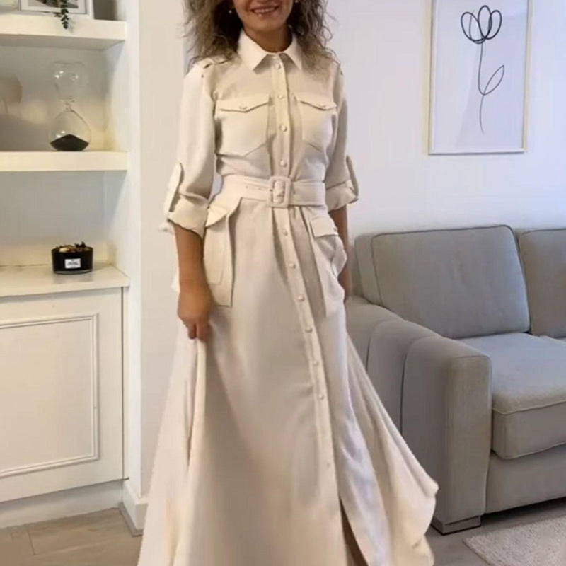 Summer Dress Women's Pullover Short Sleeve Linen Solid Color