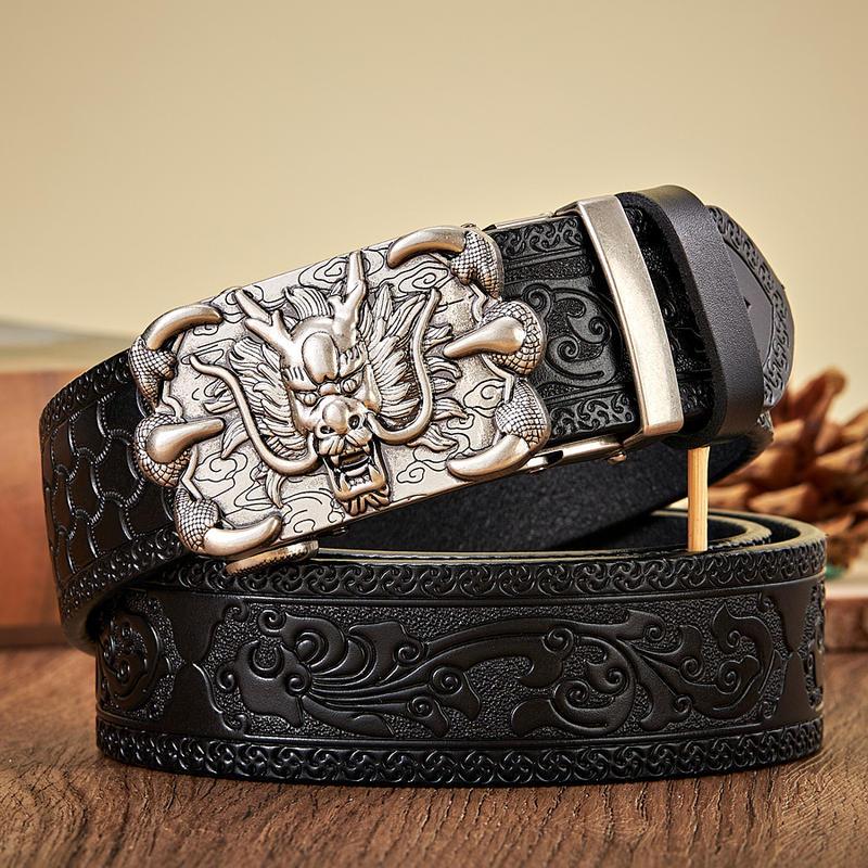 3.5CM Dragon Automatic Buckle Leather Belt for Men
