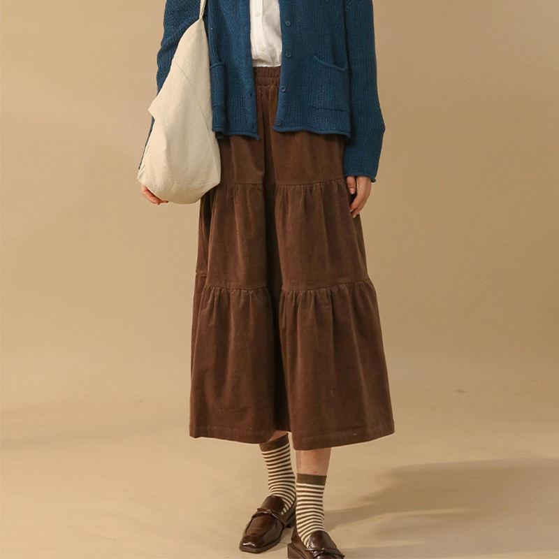 Vintage Corduroy A-Line Long Skirt for Women