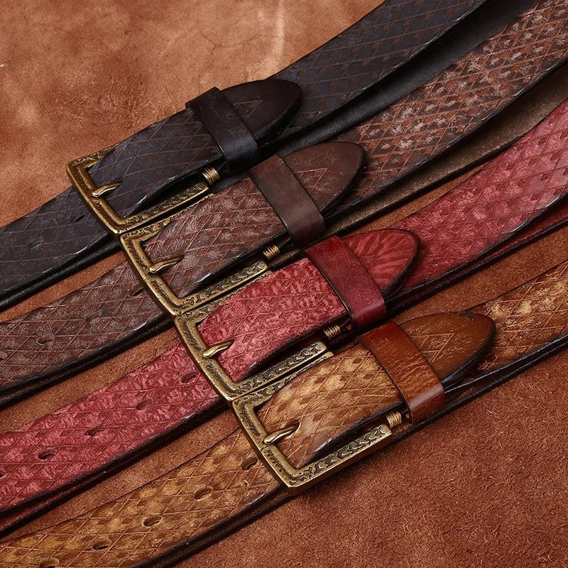 Genuine Leather Belt with Brass Pin Buckle