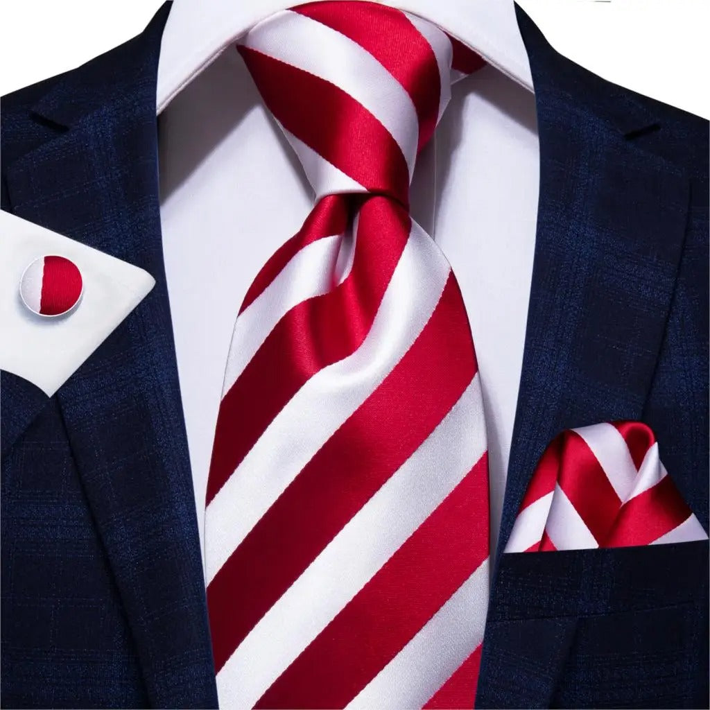Red Striped Silk Men's Tie – Luxury 8.5cm Neck Tie for Weddings and Business