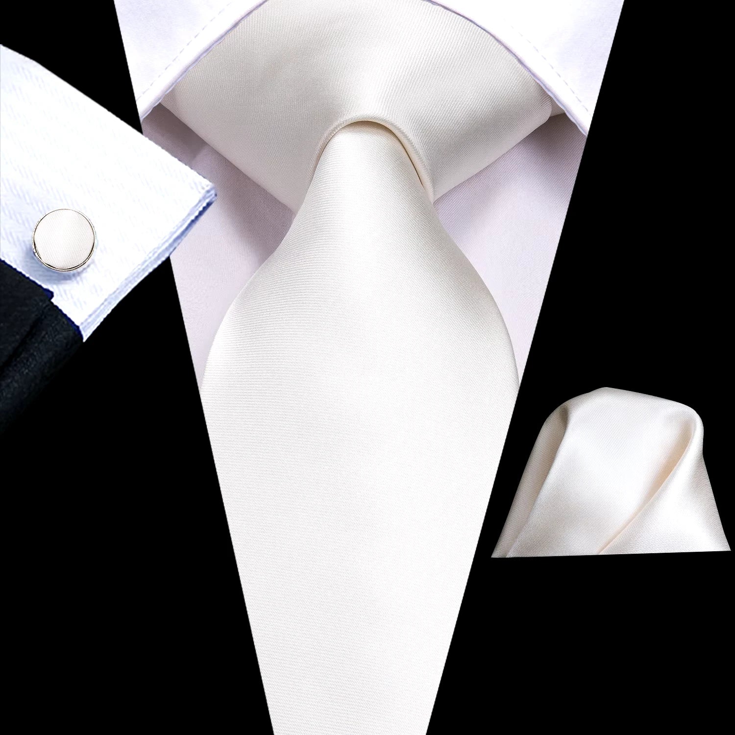 Classic White Silk Necktie Set with Pocket Square & Cufflinks