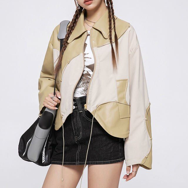 Pu Leather Spliced Zippers Jacket
