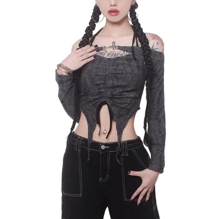 Ripped Drawstring Halter Top