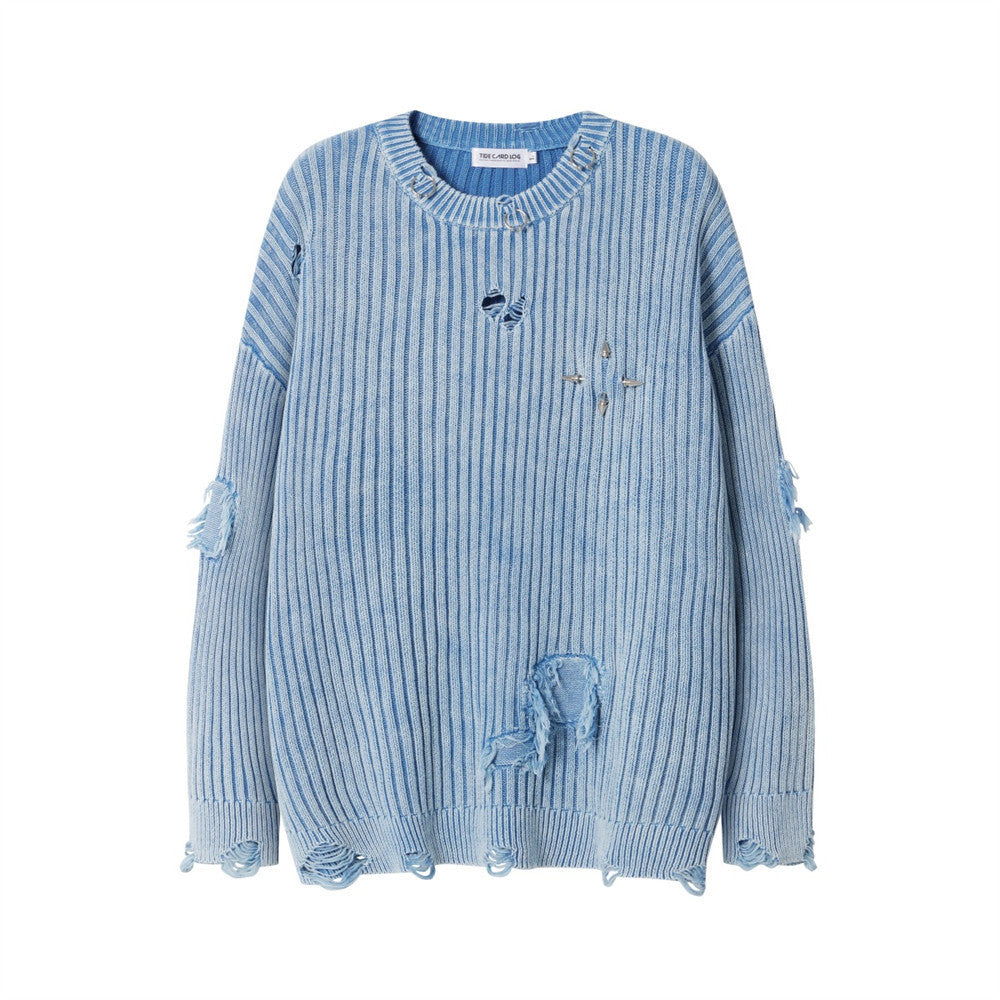 Retro Streetwear Knitted Pullover Autumn and Winter Loose Thick Warmth Hip-Hop Pullover Men'S Shirt