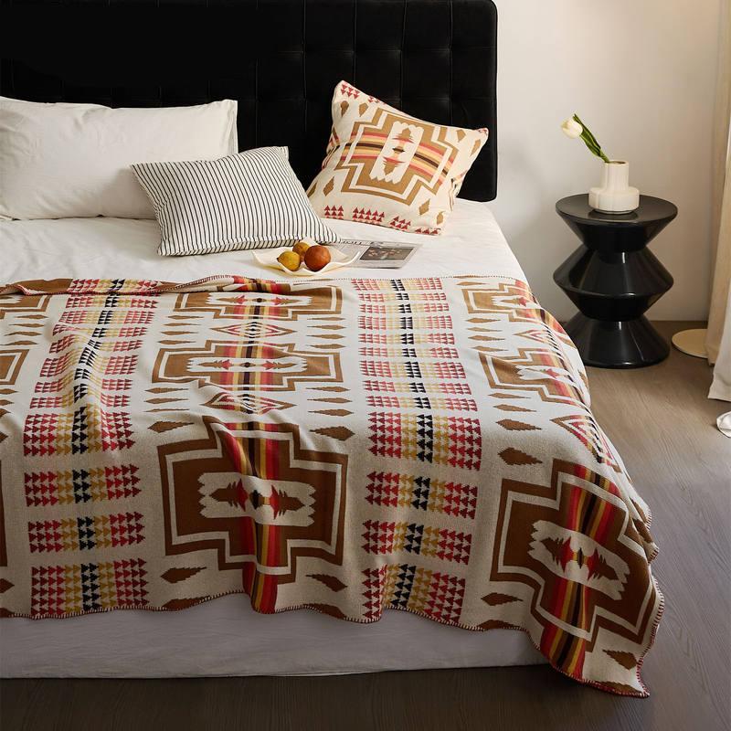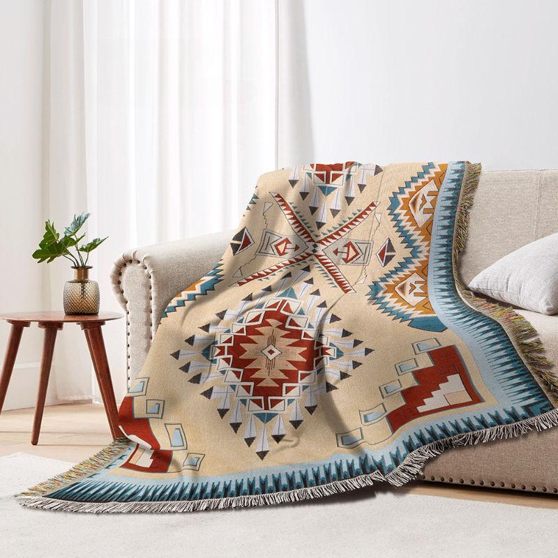 Boho Geometric Design Summer Thin Cotton Blanket for Bed and Sofa