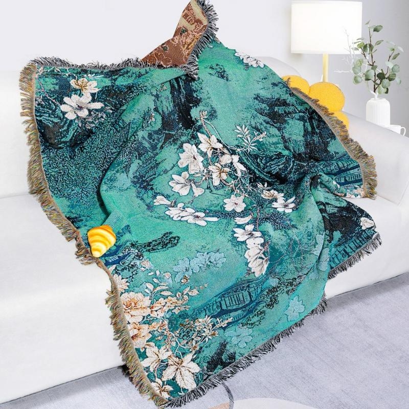 Vintage Floral Jacquard Throw Blanket for Versatile Comfort