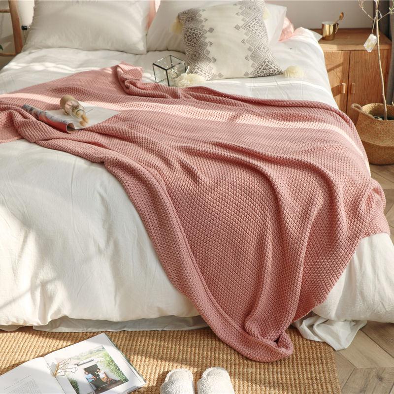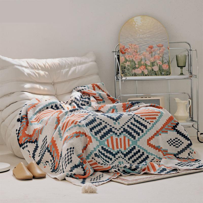 Boho Geometric Pattern Cotton Knitted Blanket – Summer Thin Breathable Comforter