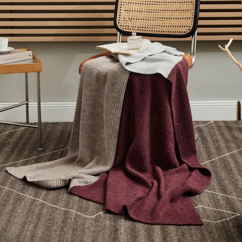 Elegant Three-Color Knitted Wool Blanket - Wearable Plaid Throw for Home and Travel