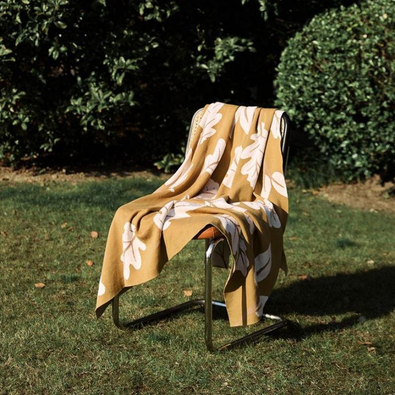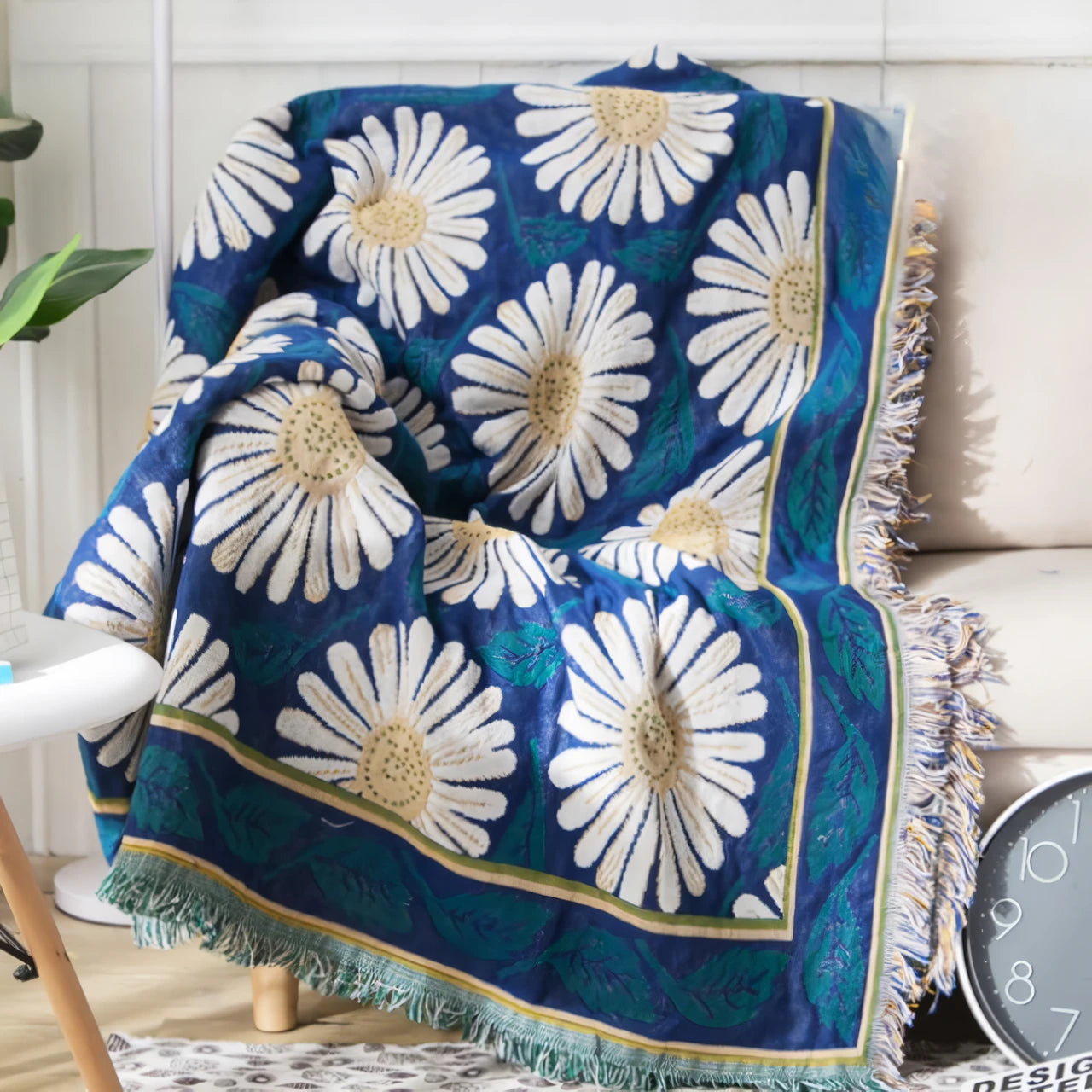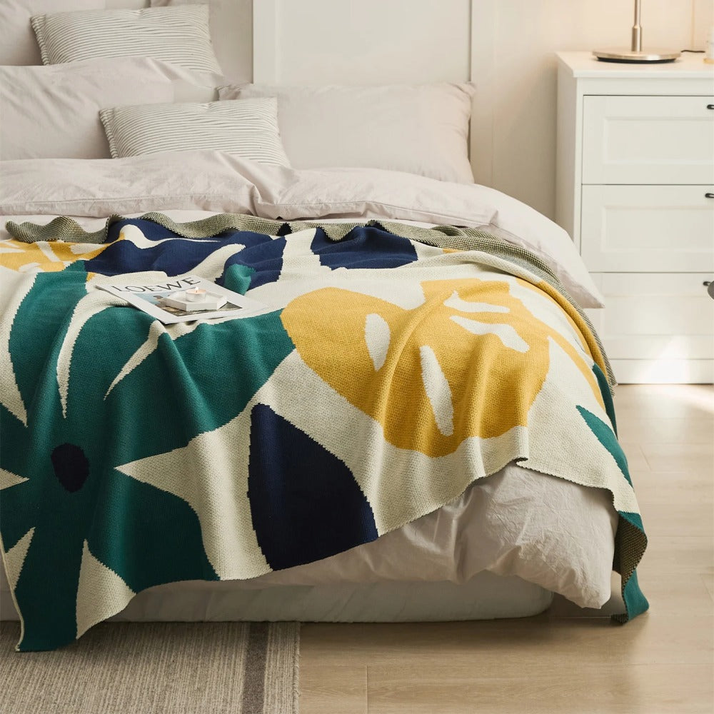 Floral Jacquard Knitted Cotton Throw Blanket for Bed and Outdoor Use